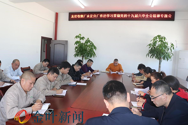 2021年11月26日下午,龍巖卷煙廠永定分廠組織黨員職工在科研樓四樓會議室傳達(dá)學(xué)習(xí)貫徹黨的十九屆六中全會精神。